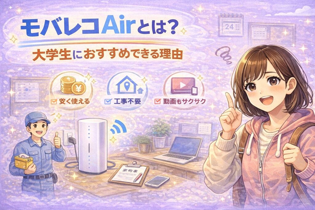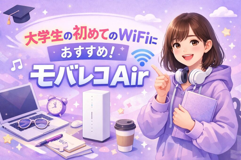 「動画も授業も止まらないWiFiがほしい」「でも難しい手続きはイヤ」そんな悩みを解決してくれるのがモバレコAir。この記事では、大学生がWiFi選びで失敗しないポイントと、モバレコAirの魅力をやさしく説明します。