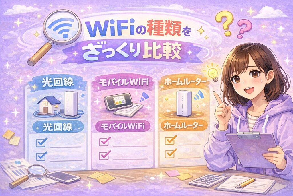 でも、WiFiの種類が多くて「どれを選べばいいの?」と迷う人も多いです。