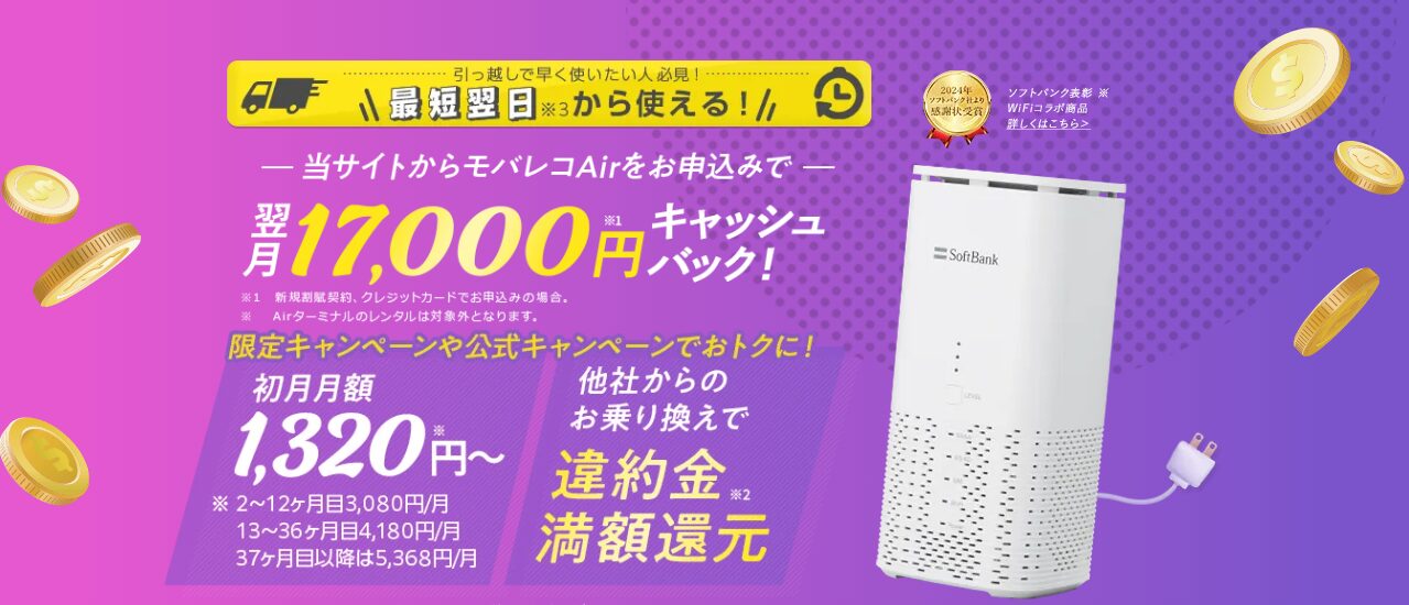 上でお伝えした3つのメリットは、実際に多くの方が実感されています。モバレコAirはSoftBank回線を使った安定性の高いホームルーターで、「工事不要・データ制限なし・初月770円」という条件を実現しているからです。